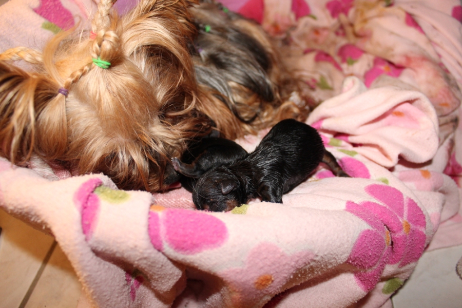 Mutti & Welpen haben die sehr anstrengende Geburt gut überstanden.